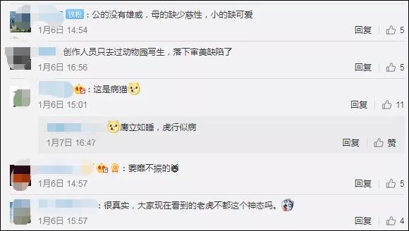 然而网友却不这么认为,“第一张图的老虎看起来有些忧伤,满脸愁容;第二张图,老虎妈妈带着两只仔仔,也不开心。大虎没有虎威,小虎也不灵动。”有网友甚至怀疑画家的水平。