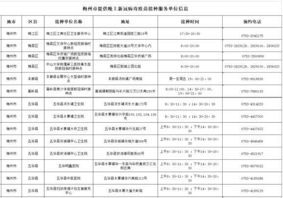 近日,梅县区文体中心、华侨城临时接种点,中山大学附属第三医院粤东医院,蕉岭县南沙体育馆临时接种点,丰顺县会展中心临时接种点等地也纷纷开设了疫苗接种“夜市”,最晚的延长至晚上九点。此外,各县(市、区)贴心地送苗下乡、送苗进厂、送苗到户,方便市民就近接种,全力推进新冠病毒疫苗特别是“加强针”的接种工作,希望尽快建立人群免疫屏障,巩固梅州市疫情防控成果。