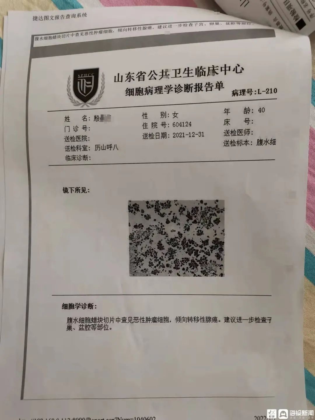 而张宁妻子的最新检查结果显示,腹水细胞蜡块切片中查见恶性肿瘤细胞,倾向转移性腺癌。