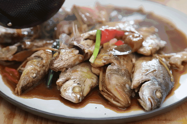把鱼放进油锅煎出香味,再下生抽料酒和姜片去腥,最后加水,将鱼肉煮至软嫩的同时又吸收了酱油汤汁,这一口滋味能把眉毛都鲜掉了。