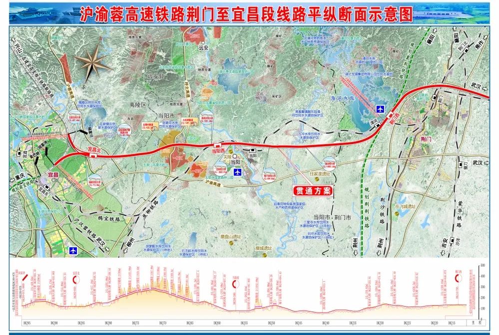新建沪渝蓉高铁武汉至宜昌段当阳境内正线里程约46.838km,占地约2619.32亩,项目投资约82.7亿元,涉及5个镇街道(淯溪镇、庙前镇、坝陵街道、玉泉街道、王店镇)18个村(场),分别是洪锦村、曹岗村、九冲村、林河村、旭光村、井岗村(含凌云集团农场)、桐树垭村、坝陵村、群力村、雄风村、关陵庙村、岩屋庙村、玉泉村、官道河村、严河村、双莲村、满山红村、九子山林场。