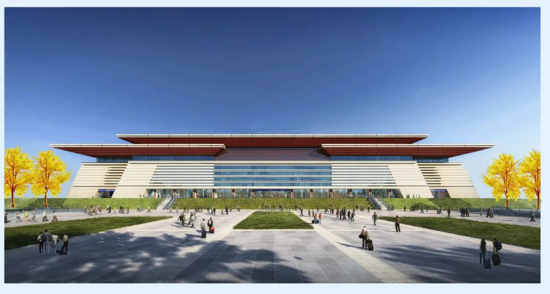 高铁当阳西站站房位于当阳市玉泉街道上壕沟附近,由上海华东院设计,以“华夏雄风、荆楚一脉、忠义当阳”为主题,用现代的设计手法诠释了当阳源远流长的荆楚文化。站房高24米、宽184米,面积12000㎡,采用两台夹四线站型,设到发线4条(含正线2条),设计的人流量高峰时期为650人/小时,年最高接待量为284万人,将于2023年下半年启动建设,2025年9月与线路同步建成投运。