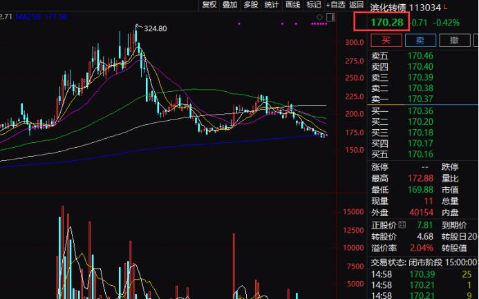 值得注意的是,截至目前,滨化转债最新二级市场价格仍高达170.28元/张,与100.378 元/张的赎回价存在巨大价差,若投资者在最后一个交易日(注:即赎回登记日1 月 10 日)收市前仍未卖出或转股,将会导致被强制赎回,直接亏损41.05%。