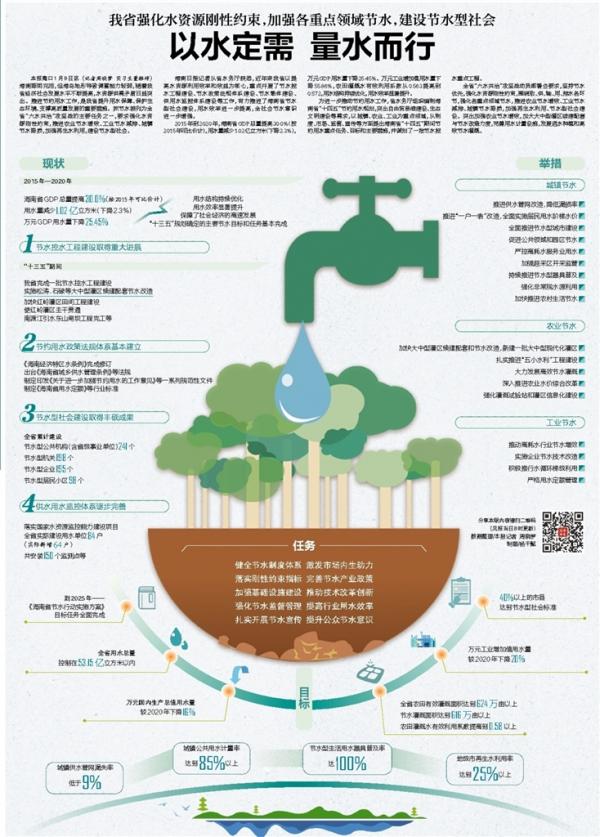为进一步推动节约用水工作,省水务厅组织编制海南省“十四五”节约用水规划,突出自由贸易港建设、生态文明建设等需求,以城镇、农业、工业为重点领域,从制度、市场、监管、宣传等方面提出海南省“十四五”期间节约用水重点任务、目标和主要措施,并谋划了一批节水控水重点工程。