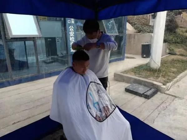 一把剪刀、一把梳子、一张椅子,一个“简易版”理发店在西安市公安局航天分局包茂高速韦曲口公安检查站的院子里“开张”了。在这里,理发师王东免费为为抗疫一线民警理发。