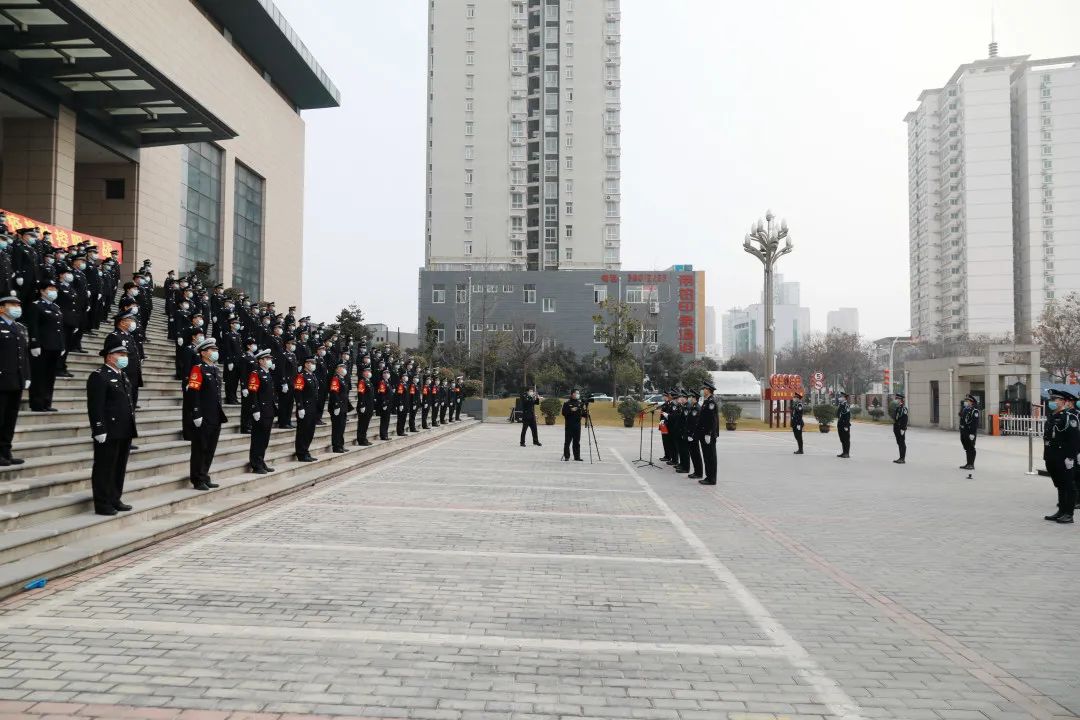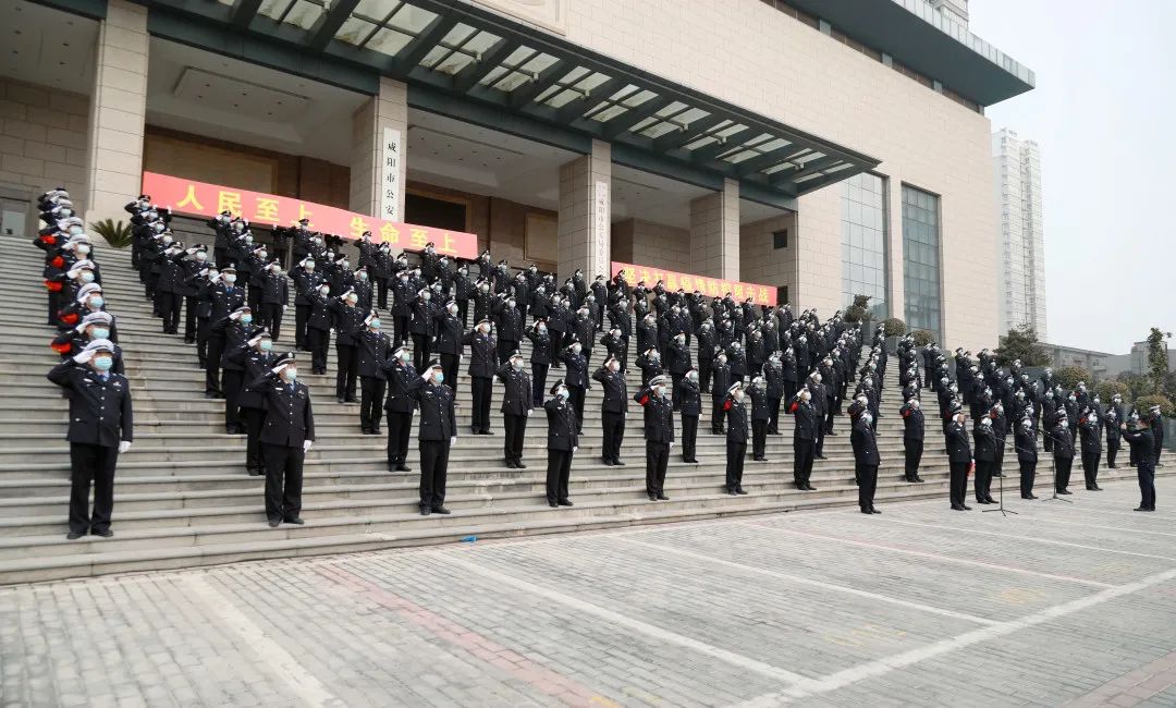“咸阳公安,誓保平安!咸阳公安,誓保平安!”升警旗仪式现场,全体民警的誓言声回响不绝。