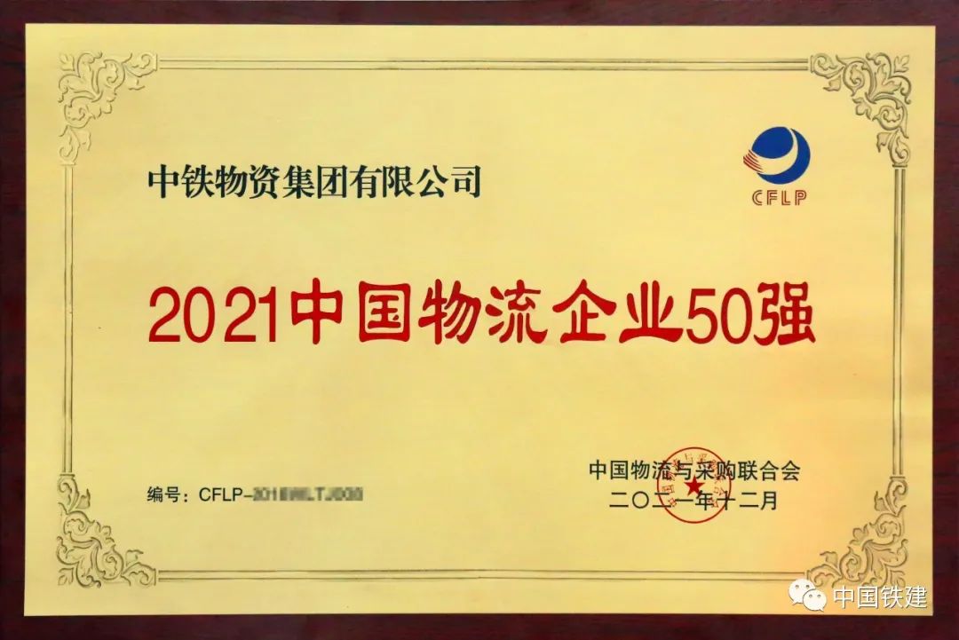 原标题:《中铁物资集团入榜中国物流企业50强第7位》