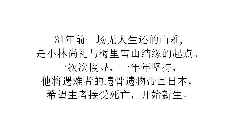 小林深知这一点,归还遗体后,便不再去打扰他们的生活,过去的17年里,他之所以仍在搜索,就是想要找到最后一位队友——队医清水久信的遗体。清水医生的父亲已经在等待的过程中去世了,年迈的母亲不久后住进了养老院,小林也渐渐不再得知她的消息。没能找到清水医生的遗体,对小林来说会成为永远的遗憾,对两位老人来说也许反而是临终的美好愿望,“他们最后似乎是觉得:不被找到也好。那么多年了都没被发现遗体,说不定是因为儿子在西藏某处的深山里还活着呢,父亲是抱着这样的想法到最后的。”