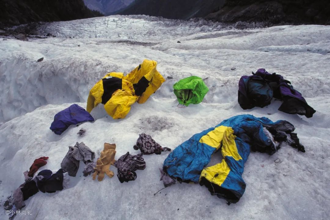面对死去的队友的心情,却总是很复杂。从雪山落下、被冰川重压、遭受强烈腐蚀的遗体,往往是惨不忍睹的。小林在书中展示了几张包裹在衣服中的遗体碎片,已经是非常温和的画面,更多拍摄下的现场场景,因为过于残酷不能展示给外人看。