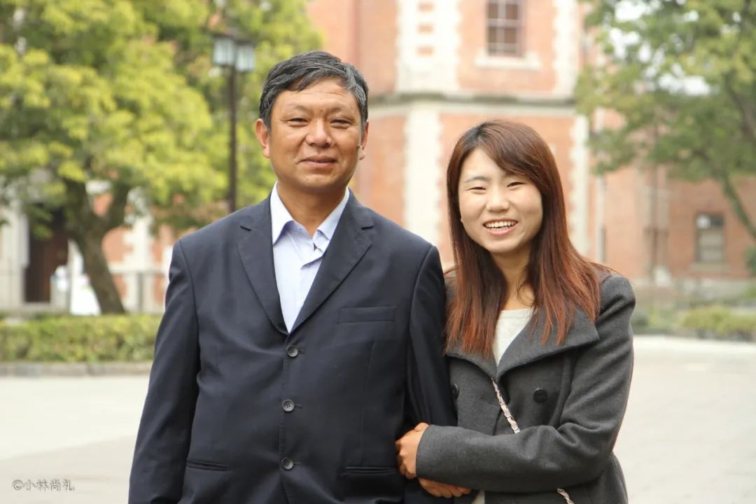 2014年,来到日本的村长和女儿Pematsumo在同志社大学毕业典礼上。