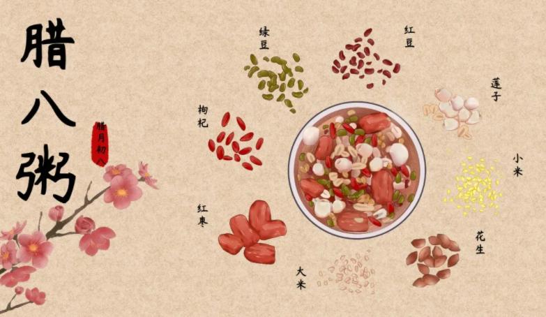 腊八粥也称七宝五味粥,是一种由多样食材熬制而成的粥。喝腊八粥这个习俗已经有一千多年的历史了,其中最早起源于宋代,到了清朝,喝腊八粥更是盛行。在民间,家家户户都要做腊八粥,祭祀祖先;同时,合家团聚在一起食用,馈赠亲朋好友。