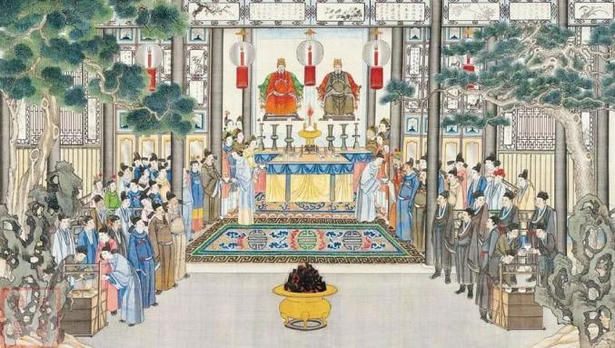 宗族祭祀也是年节大事,特别像贾府这样的功勋家族。腊月里宁国府便“开了宗祠,着人打扫,收拾供器,请神主,又打扫上房,以备悬供遗真影像”,还要对宗祠进行修缮装饰。其他各房各院也要进行彻底的打扫,谓之“掸尘”。同时祭祀所用的各色贡品,还有年下的食物也要提前做好准备,这些大多都是贾府的厨房来置办。