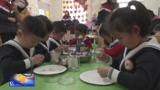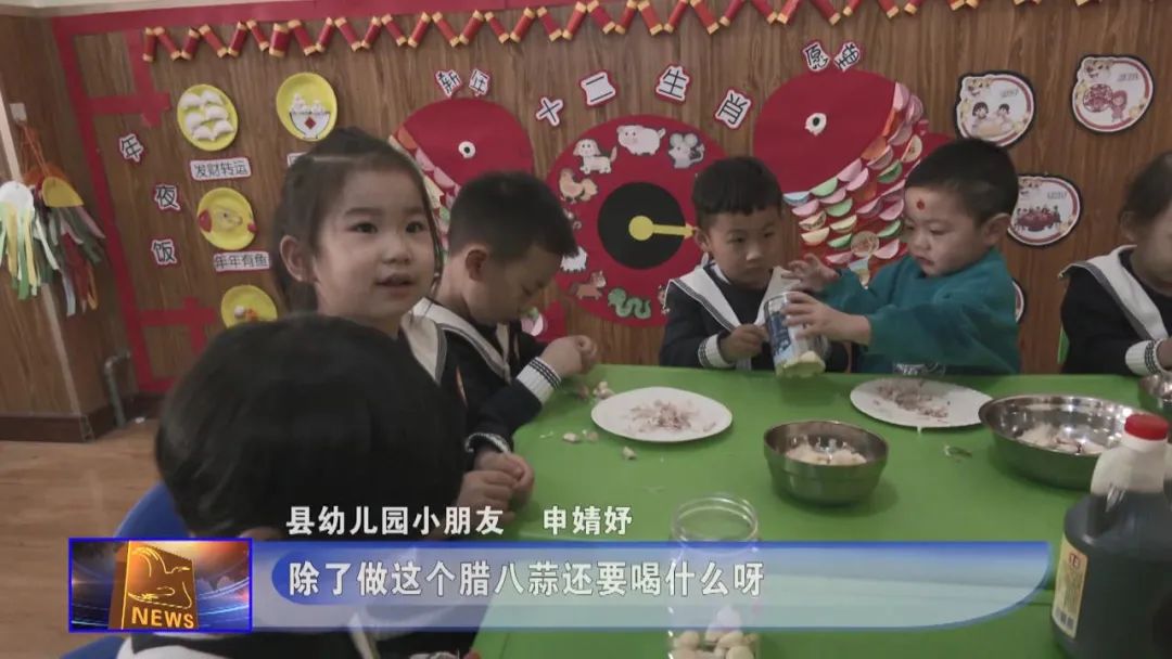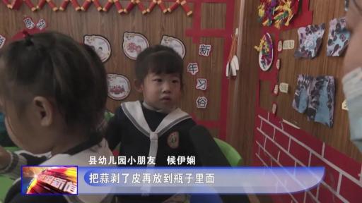在县幼儿园,老师们正在讲述腊八节的由来、风俗等知识,在老师的精心指导下,孩子们剥蒜皮、倒香醋,做腊八蒜,用稚嫩的小手细细体会着腊八节的风俗年味。