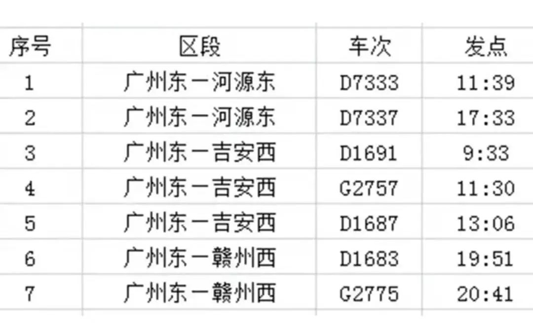 ��广州南—潮汕 G6345次运行区段调整为广州东—梅州西(汕头),车次改为D7157次。
