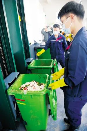 云安会都酒店内的分散式厨余垃圾处理点。记者赵伟摄▶
