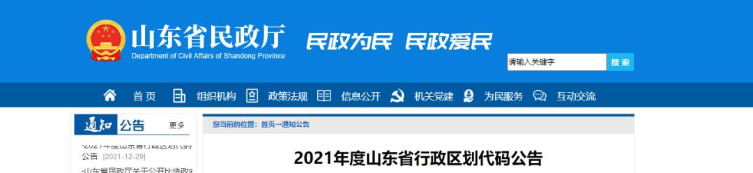 2021年度山东省行政区划代码公告
