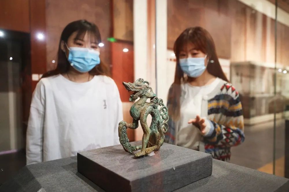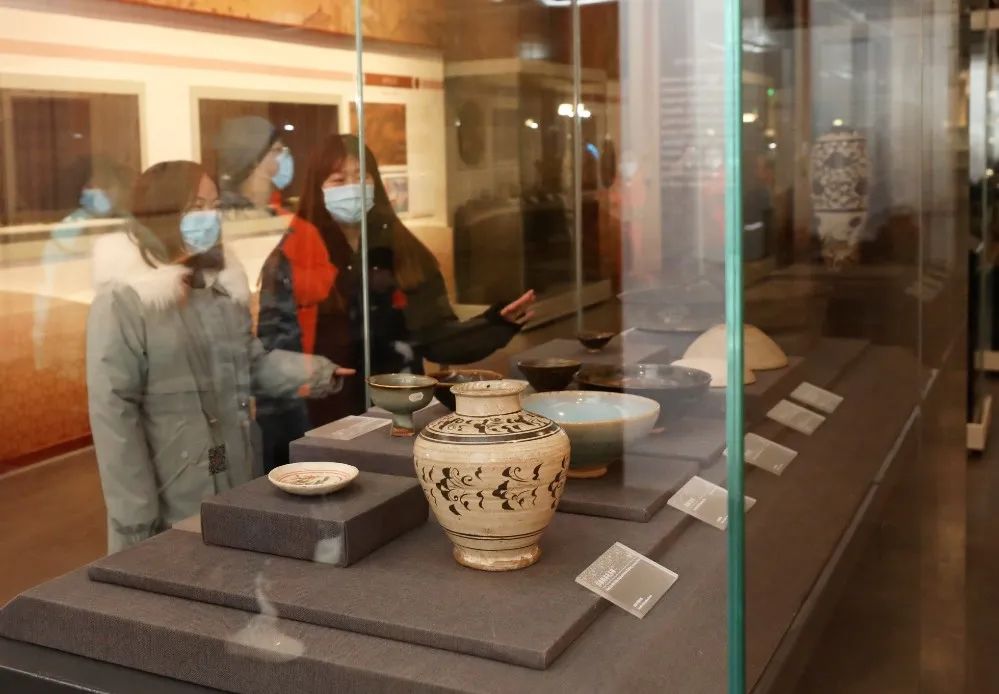 2022年1月10日,观众在崇礼区太子城遗址陈列馆欣赏展品。