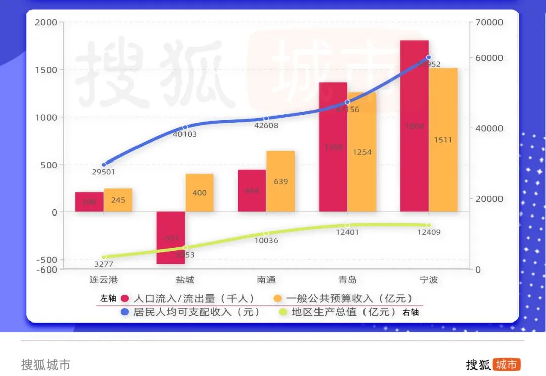 同为沿海城市,江苏沿海三市与宁波、青岛差距巨大(2020年数据)