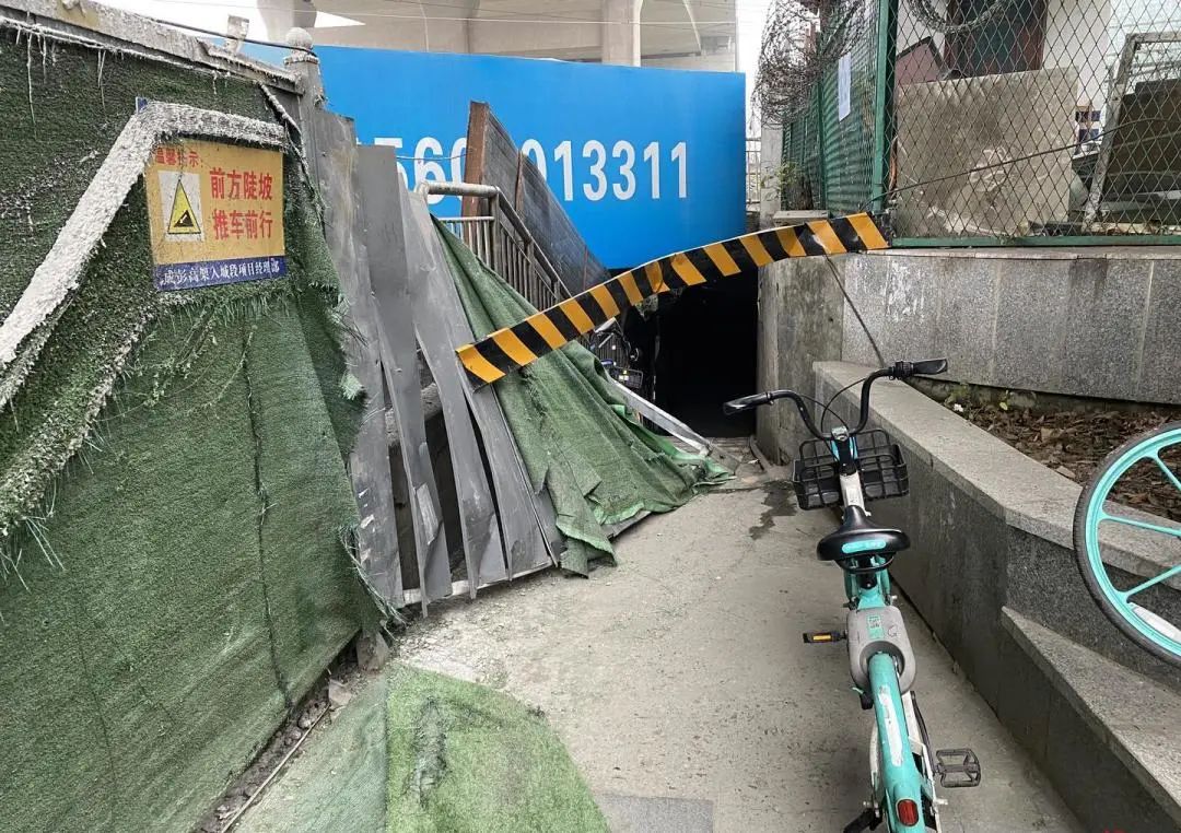 家住附近的王先生告诉政事君,每天上班他从家出门后,需穿过下穿隧道,然后才能前往公司上班。由于道路施工,原本正常通行的铁路下穿隧道封闭后,每天回家他只能推着自行车从隧道左侧通过。像王先生一样,每天来往于铁路两侧的居民不在少数。