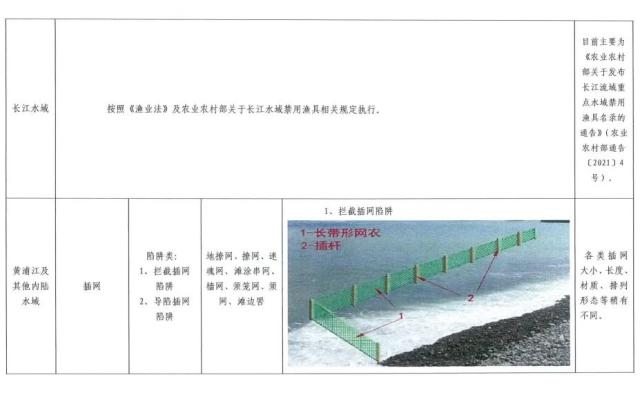 2、禁用渔具:按照《中华人民共和国渔业法》及农业农村部关于长江水域禁用渔具的相关规定执行。