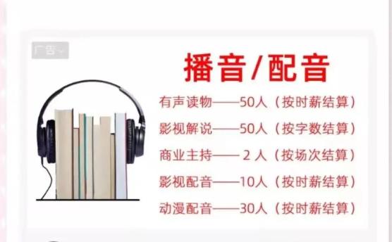 在各类网络社交、视频平台发布广告称可以培训主播、配音员、视频剪辑师等等,通过付费课程打造网红,学成后可从事自媒体创作类高薪兼职,吸引有兴趣的用户。