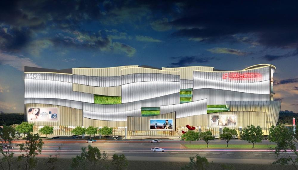 百联又一城外立面改造项目位于上海市杨浦区五角场商业中心,总建筑面积约12.6万平方米,主要涉及建筑结构加固和装饰装修(幕墙)两大分部工程,原有封闭的建筑外观已无法适应新零售业态的发展需求,八局装饰从城市更新、商业与城市共融的角度出发,打造时尚、活力、绿色的建筑新形象。