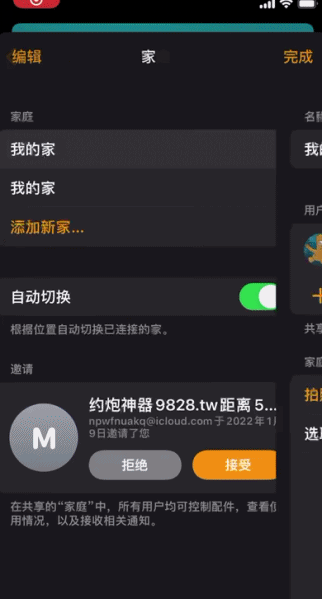 它推送邀请的原理也很简单,通过家庭 App 发送邀请给其他用户,只要知道对方的邮箱,就能进行无差别邀请,只要邮箱没输错,谁都能收到。。。