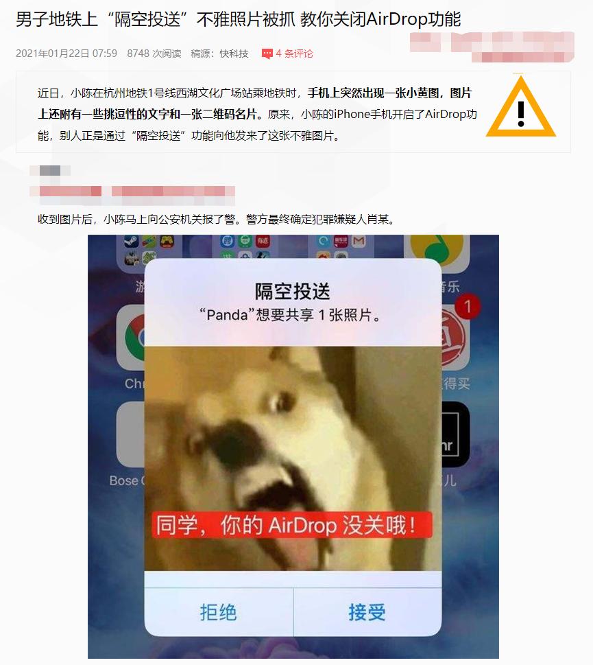 CnBeta:男子地铁上“隔空投送”不雅照片被抓 教你关闭AirDrop功能