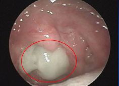 据他自己说,早晨起来还能从嗓子上咳出来粘稠发黄的痰块,有时候觉得嗓子有东西往下流。