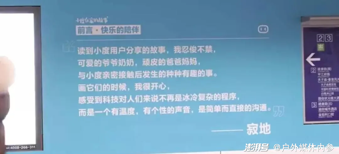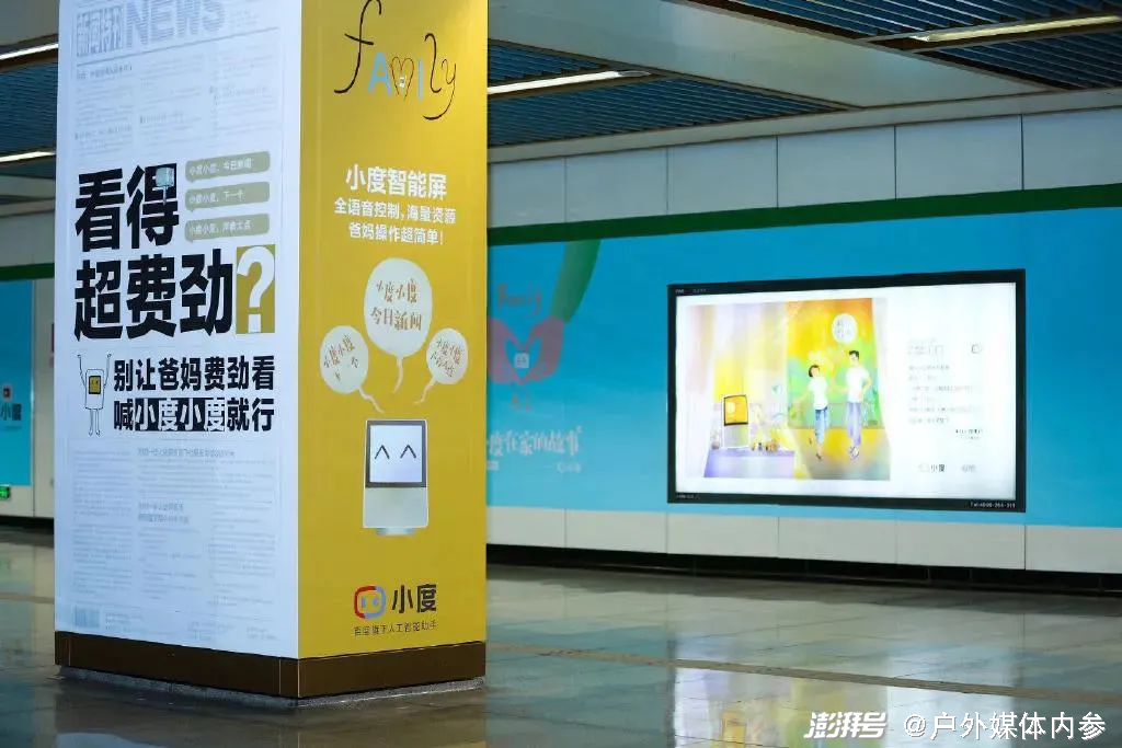 一幅幅温暖的画面,一个个动人的小故事,生动展现了小度与家人们之间的亲密互动,在勾起人们对家人思念之情的同时,也建立起了小度产品与用户之间的情感链接。当这些极具活泼、温暖的广告画面被投放到地铁站后,引来了不少乘客的关注,人们站在广告前阅读画面中温馨的小故事,同时也感受到小度广告为内心深处最柔软处所带来的触动。