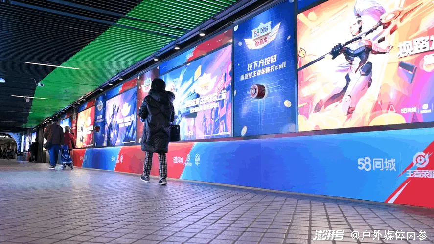 「58同城」的“涨薪季”营销活动中,联合《王者荣耀》在上海地铁站布置了一条“王者峡谷通道”。以地铁通道包装、英雄角色广告画面喊话、游戏主题立体橱窗打造、游戏同款声优语音装置互动、职场趣味预测互动装置等融“视、听、感、玩”于一体的线下情景交互方式,与用户进行深度互动,引发各大社交平台的网友纷纷现场打卡,向更广泛的人群传递了“58同城总有涨薪好工作”的业务优势,最终实现线下营销的破圈。
