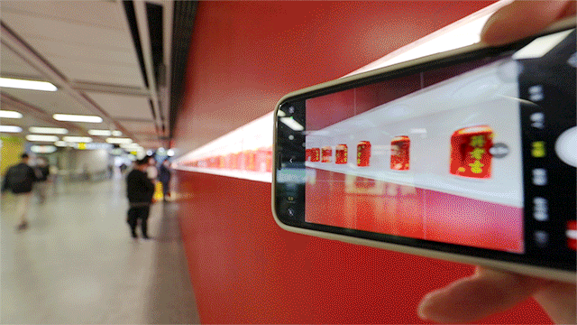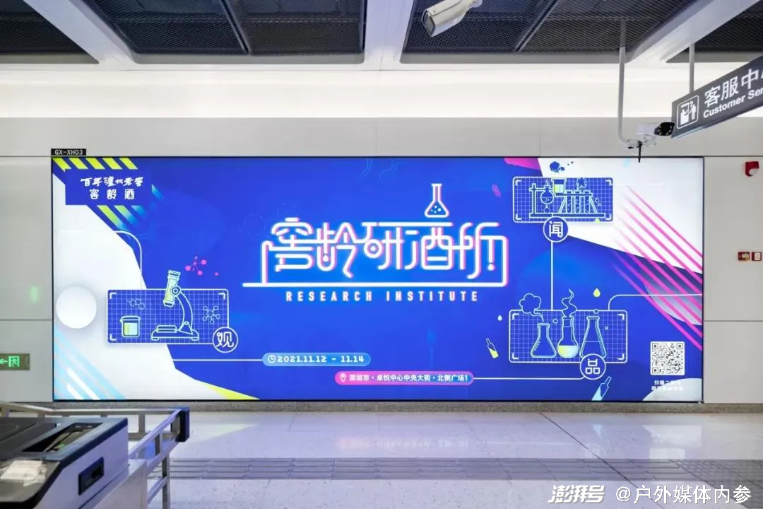 为更好地亲“龄”年轻消费群体,「泸州老窖窖龄酒」以散发性思维在地铁站内打造了一个“研酒所”,巧妙运用色彩斑斓的霓虹酒樽墙贴,结合微生物、研酒室器皿打造成灯光模型装进地铁站厅品牌墙,精心打造柔光与色彩的美妙变幻。现场还设置有互动小环节,吸附在墙上的异形磁石贴小巧精致,各式各样、色彩纷呈,且扫描磁石贴的二维码,还能了解更多活动详情。沉浸式的地铁创意展示,俨然成为城市网红打卡地。