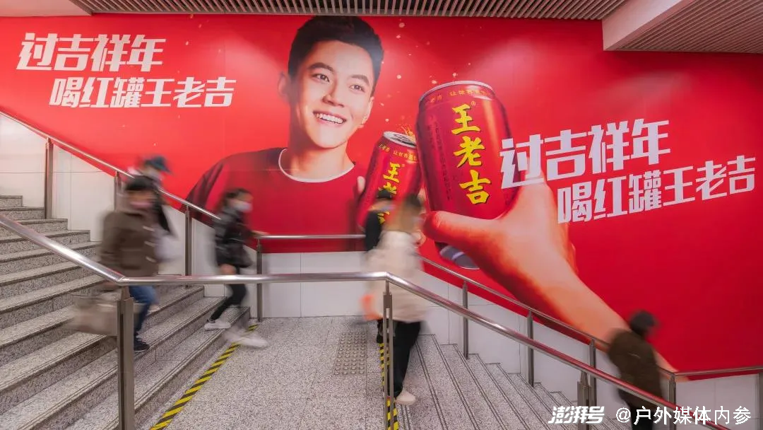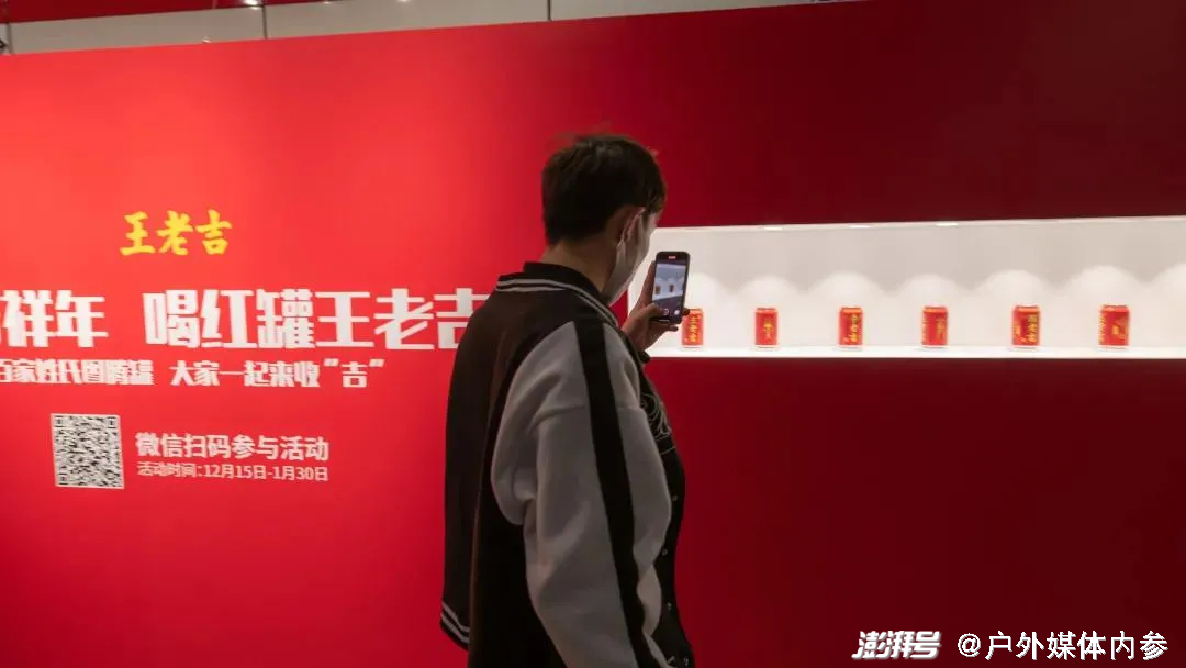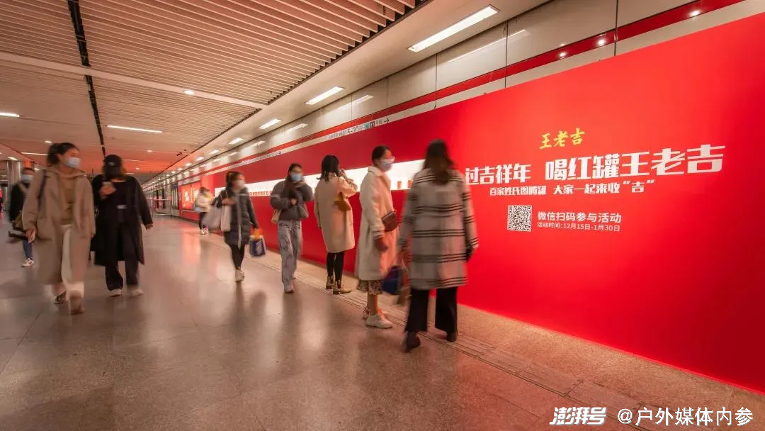 还有「王老吉」在12月份带着独家推出的姓氏图腾罐,登陆上海、广州、深圳、杭州、成都、重庆等城市的地铁站,打造一条喜庆吉祥的红罐王老吉姓氏图腾通道,一派喜气洋洋、气势磅礴的景象直接将春节氛围拉满,吸引不少过路人为之驻足,一边感叹“好想过年”,一边乐此不疲地寻找本家姓氏图腾罐合影打卡。并且邀请用户在社交平台分享合照加上#王老吉姓氏图腾罐#话题就能有机会抽取奖品,一时间给用户展示和分享的机会,吸引他们产出更多的UGC内容,让过年的氛围不仅局限在线下,同时也在线上呈现。