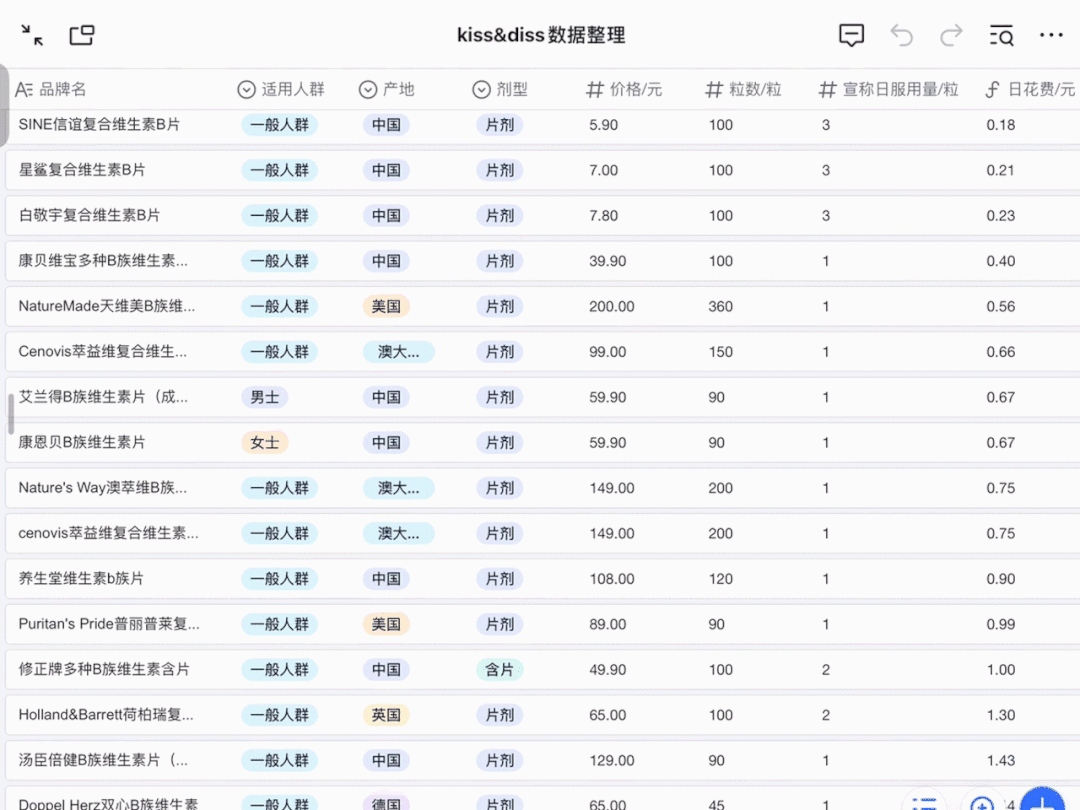 一般商家会宣传缓释片“体内作用6-8小时”,暗示吸收更好;但其实,像维生素B族这种产品,想提高吸收,一天分几次吃就好了,而且大多数产品的剂量都远远超过推荐摄入量。缓释工艺可能对于止痛、辅助睡眠等功效的产品来说,意义更大。