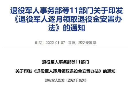 近日,退役军人事务部等11部门印发《退役军人逐月领取退役金安置办法》,自2021年12月24日起施行。这是我国退役军人安置政策的重大调整。一起来看细则。