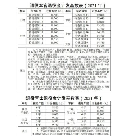 退役金发放标准: