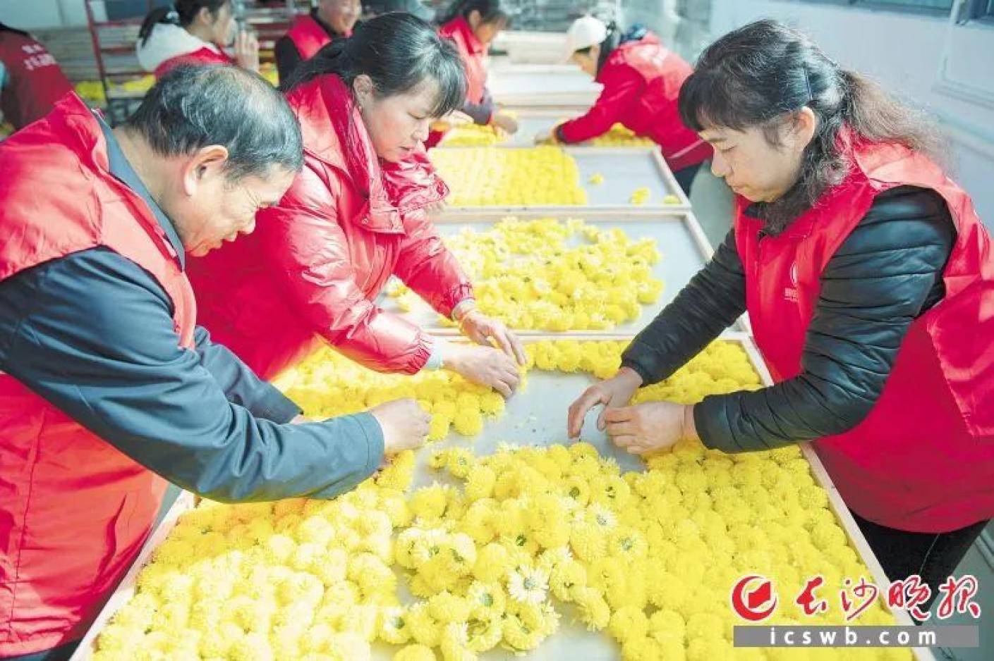 望城区福塘村种植了皇菊、迷迭香、芍药、百合等,创建芳香中药材基地。图为志愿者们正在整理筛选皇菊。长沙晚报全媒体记者 邹麟 摄