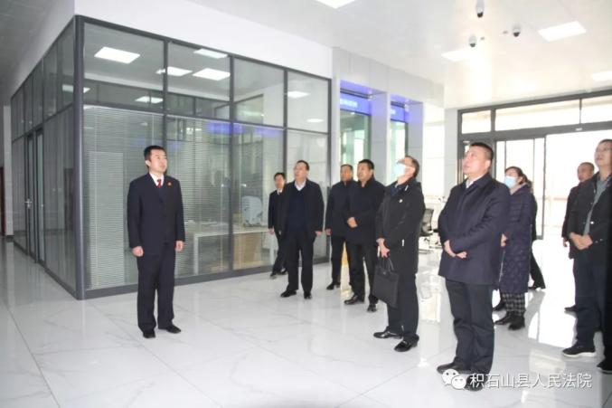 1月12日上午,平安甘肃建设工作考评第十四组组长省国家安全厅二级调查专员厚泽一行到积石山县法院考评平安建设工作,临夏州委常委、州委政法委书记李鹏,积石山县委常委、政法委书记、公安局局长郭建军等州县领导陪同考评。