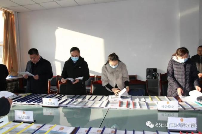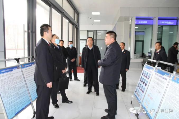考评组一行在县法院诉讼服务大厅实地察看了网上立案、诉前调解、政法协同办案平台等信息化平台运行状况。党组书记、院长焦兴勇从诉讼服务、审判执行、涉诉信访等方面向考评组汇报了积石山县法院2021年平安建设工作开展情况。考评组通过查看台账资料,听取汇报等方式,详细了解了县法院平安建设、扫黑除恶、队伍教育整顿等重点工作开展情况。