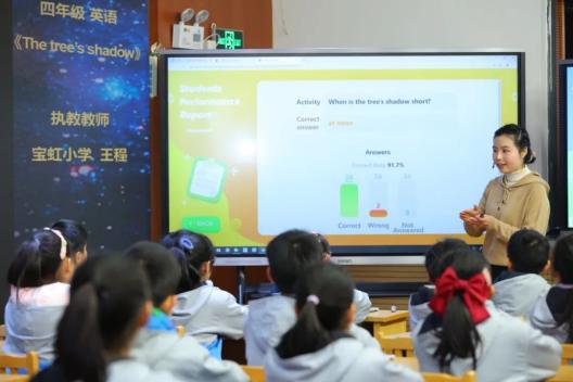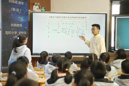 近日,上海市基础教育教学数字化转型展示会在宝虹小学顺利举行。宝虹小学教师宋老师和王老师基于“中小学数字教学服务平台(试用版)”中的“备课助手”“教学助手”“作业辅导助手”软件,为大家带来了小学四年级数学展示课《垂直》和小学四年级英语展示课《The tree’s shadow》。