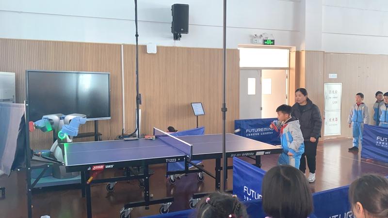 在宝虹小学,孩子们喜欢参与体育锻炼,不仅仅是被认可和鼓励,更重要的是运动给他们带来了特别的快乐体验——“乒乓球陪练助手系统”“体育运动学习系统”让体育活动课变得与众不同。“谁想第一个和机器人打球?”体育老师杨老师话音刚落,全班同学跃跃欲试,都期待和这个有“手臂”、有“嘴巴”的乒乓球陪练助手一较高下。“嘴巴”里发球,“手臂”一挥,手持的乒乓板顺势打出球去,一个接一个,毫不含糊,一侧的电子屏则记录着全过程。