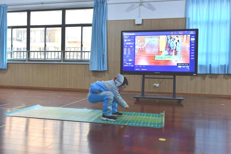 课堂上,教师打开体育运动学习系统,开展日常体育技能学习,比如跳绳、立定跳远。体育教师引导学生观看体育技能规范动作演示视频,反复学习规范动作;对照系统提示,开展动作纠正;通过练习成绩的前后数据对比,可以了解到自己超越了多少小伙伴,提高练习的趣味性。除了单人练习,系统还能进行趣味挑战。