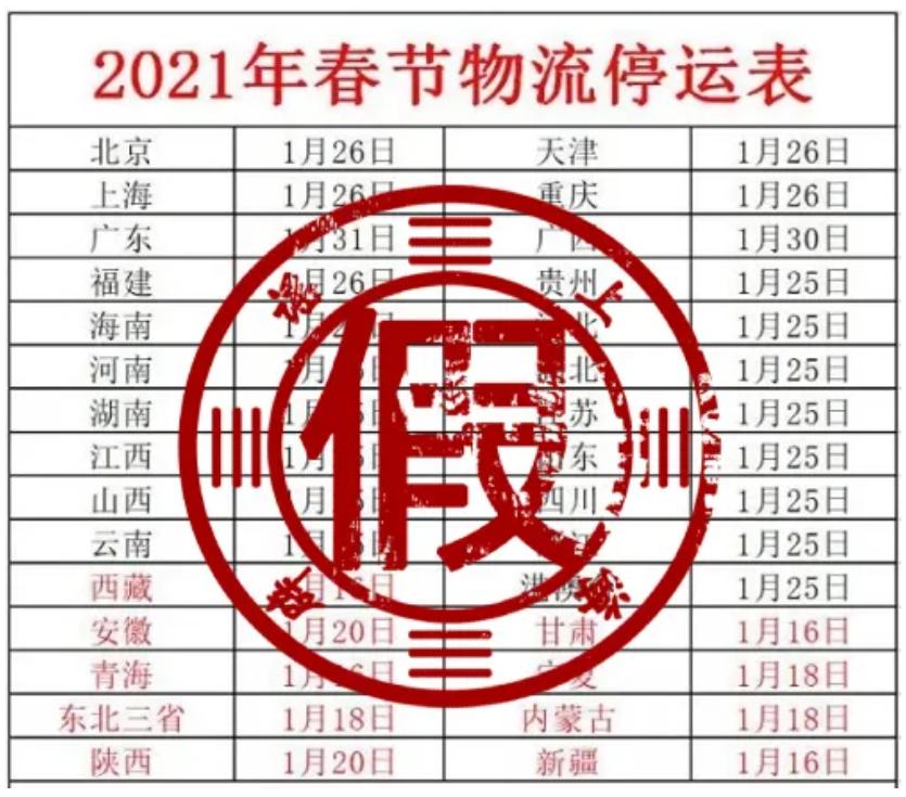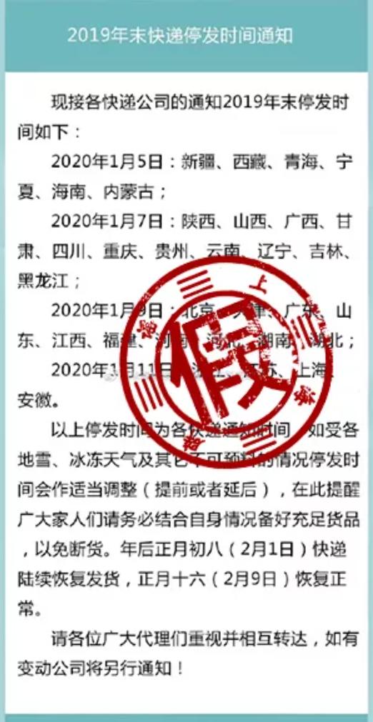 其实,每逢春节来临之际,网络上都会出现类似的“全国快递停运时间表”,最终都被证明是谣传。