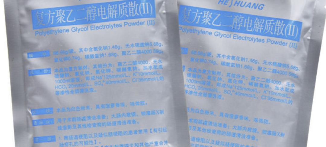 药物(全肠灌洗液)的配制:常使用复方聚乙二醇电解质散(II),每一袋融入1000毫升温水中,注意不要用开水冲。通常使用2袋,溶解后,大概要喝2000毫升的水。如果像孙女士这种之前2袋效果不佳,可增加至3~4袋,溶解后要喝3000~4000毫升的水。该药物含有电解质,所以不用担心大量腹泻导致发生液体和电解质紊乱。