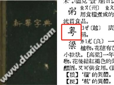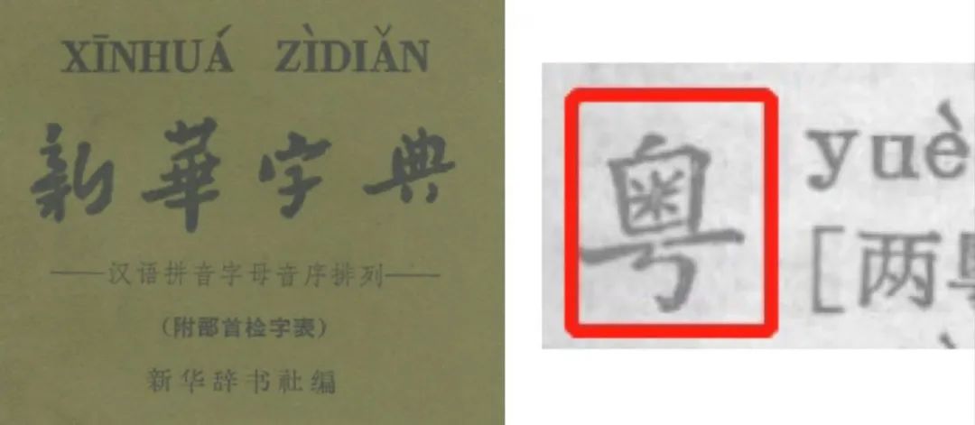 在1954年的《新华字典》中,“粤”字同样与当代写法有些出入,不过仍然是封口的。