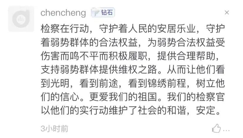 上海检察机关在支持起诉方面做了很多创新,让人耳目一新,我感觉检察机关是有所作为,而且是敢于作为。检察机关通过支持起诉介入,为弱势群体打开一扇走得通、走得畅的维权大门,让弱势群体能更好的维护自身权益。上海检察机关通过支持起诉,真真切切地为群众办了实事,体现了检察机关以人民为中心的服务理念。