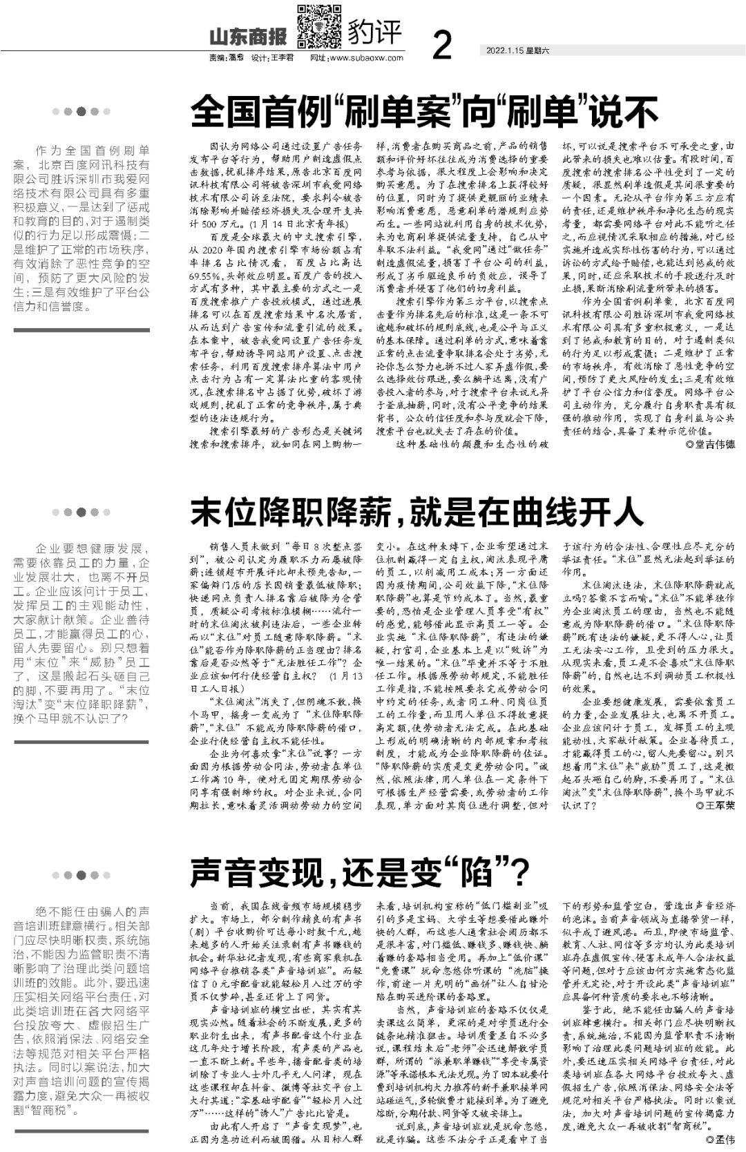 1月14日,最高人民法院发布意见指出,加强反垄断和反不正当竞争案件审理力度,①最高法要求依法严惩强制二选一、低价倾销、强制搭售、屏蔽封锁、刷单炒信等垄断和不正当竞争行为;②依法认定经营者滥用数据、算法、技术、资本优势以及平台规则等排除、限制竞争行为,防止资本无序扩张,保护中小微企业生存发展空间。(人民日报)