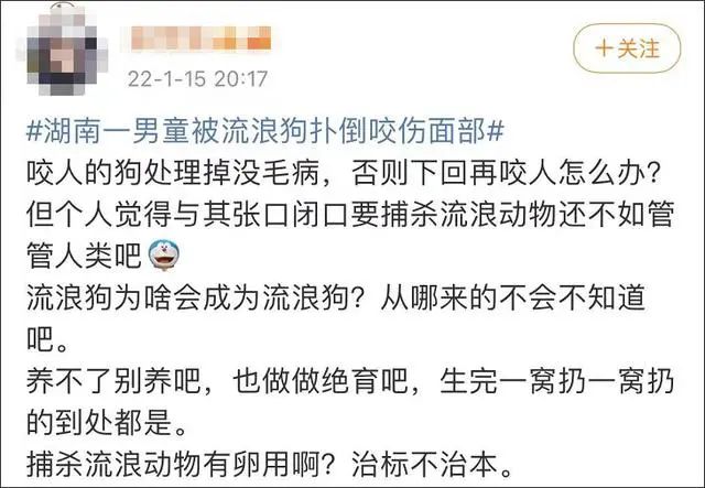 还有网友补充,流浪狗背后的弃养、无序繁殖等问题也应受到重视。