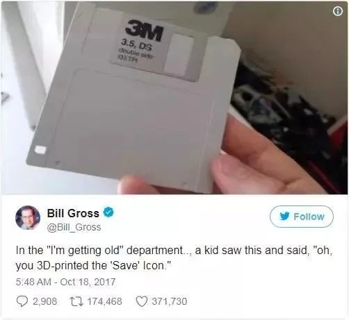 很多00后的年轻人可能从来都没见过3.5英寸软盘。曾经有一个笑话:一个孩子找到了父亲仓库里的软盘,并询问父亲为什么有这么多保存按钮的3D打印模型。