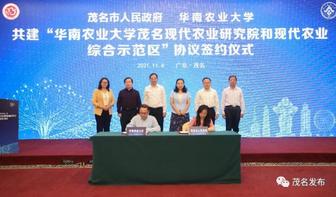 茂名市人民政府与华南农业大学签订“华南农业大学茂名现代农业研究院和现代农业综合示范区”协议。